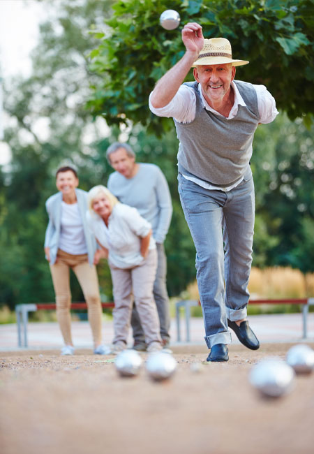 Eigentlich meinen wir ja „Pétanque“, eine Art des aus Frankreich kommenden Boule-Spiels. Da dieses aber dem Boccia sehr ähnlich ist und uns hierzulande das Wort „Boccia“ viel leichter über die Lippen kommt, wollen wir es auch so benennen.